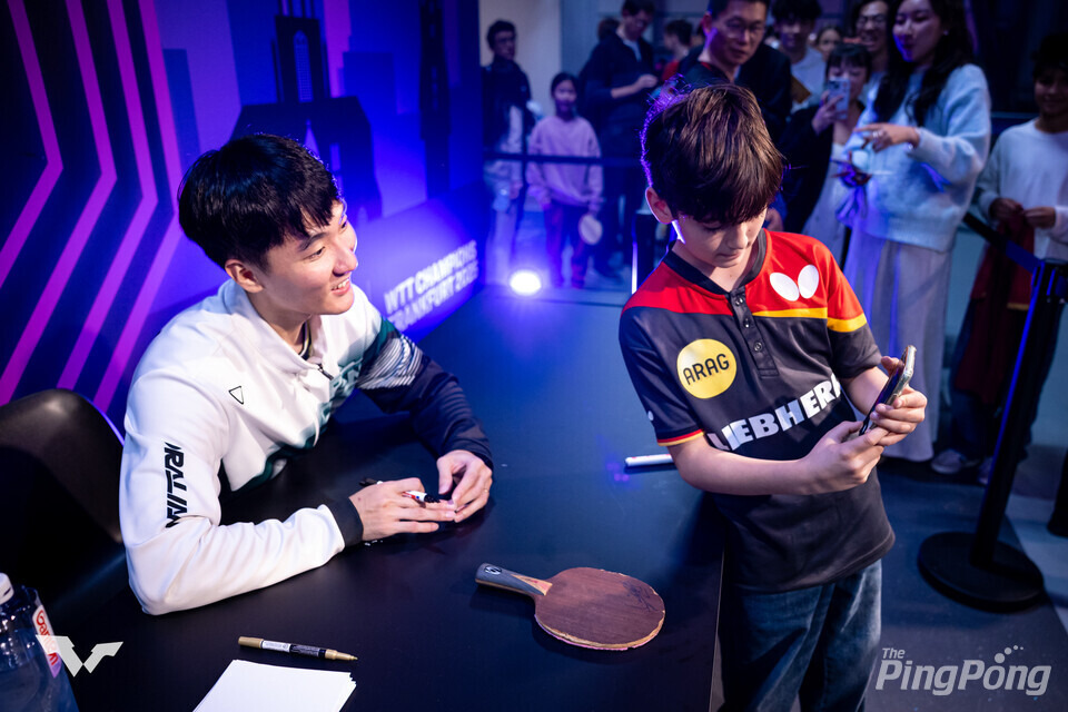 ▲ 이상수의 은퇴를 기념하는 WTT의 배려가 인상 깊다. 선수로는 어쩌면 국제무대에서의 마지막 사인회. 사진_WTT.