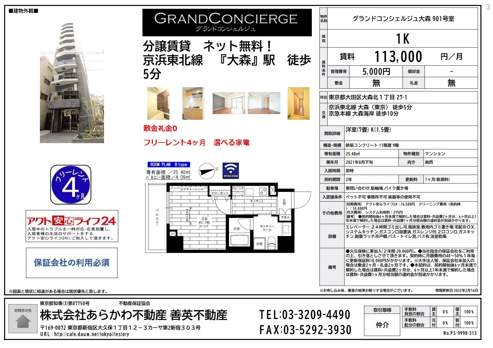 [JR케힌토호쿠선]신축(시0/레0)오타구 케힌토호쿠선 오모리역 5분 2021년축 GC오모리(901호-113,000엔+5천엔)25.48㎡넷무료