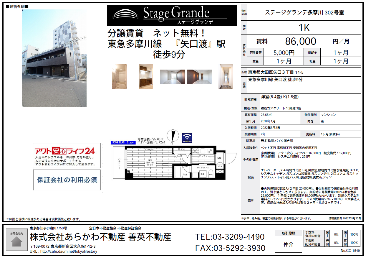 [都営오에도선](시1-상각/레1)타이토구 오에도선 신오카치마치역 8분 2018년축 SG아키하바라(302호-86,000엔+5천엔)25.65㎡ 넷무료