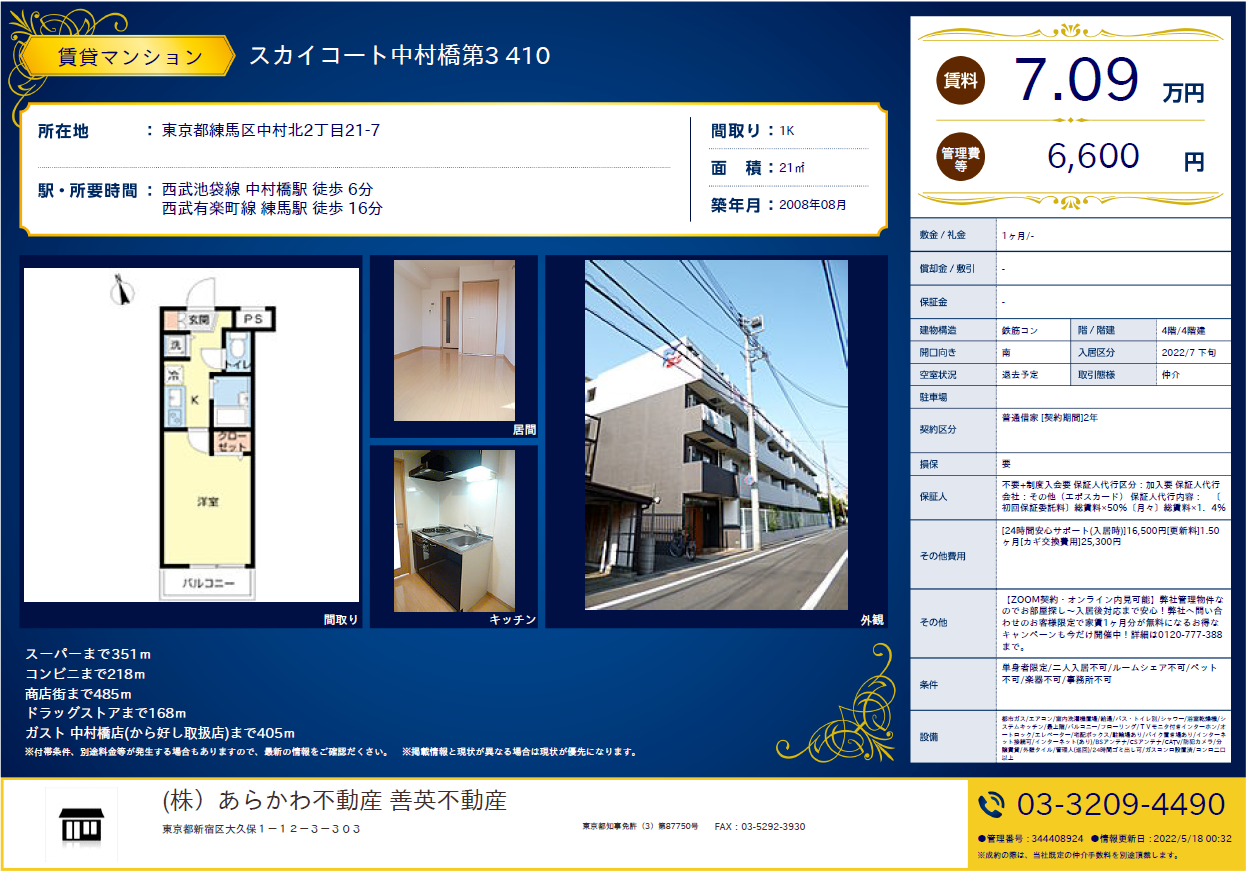 [스크랩] [추천2 한국가능](시1/레0)네리마구 세이부이케부쿠로선 나카무라바시역 3분 2008년 SC나카무라바시제3(410호-70,900엔+6,600엔)21㎡