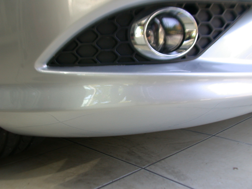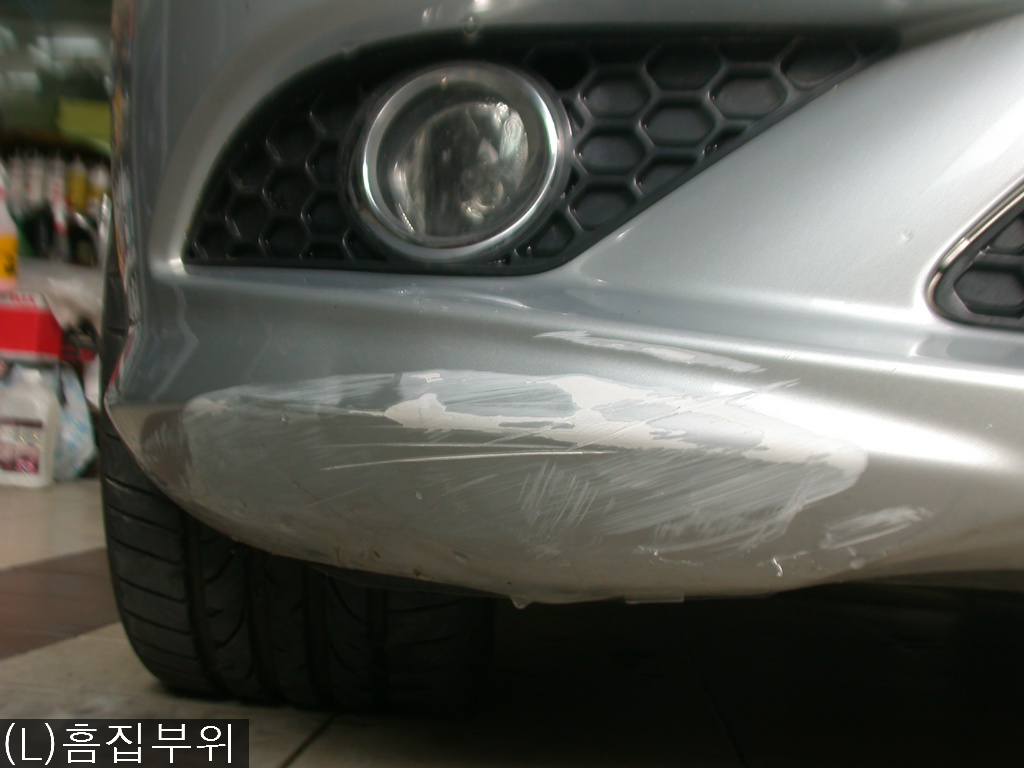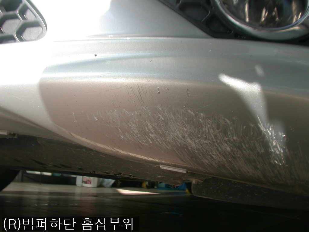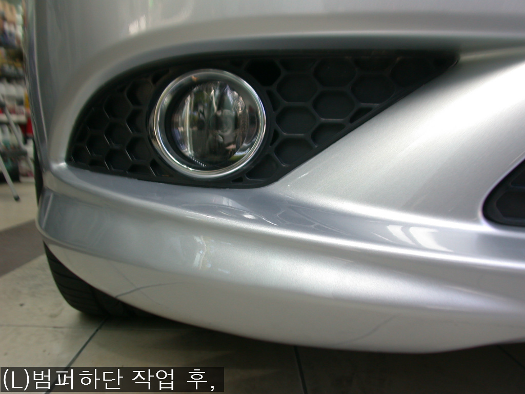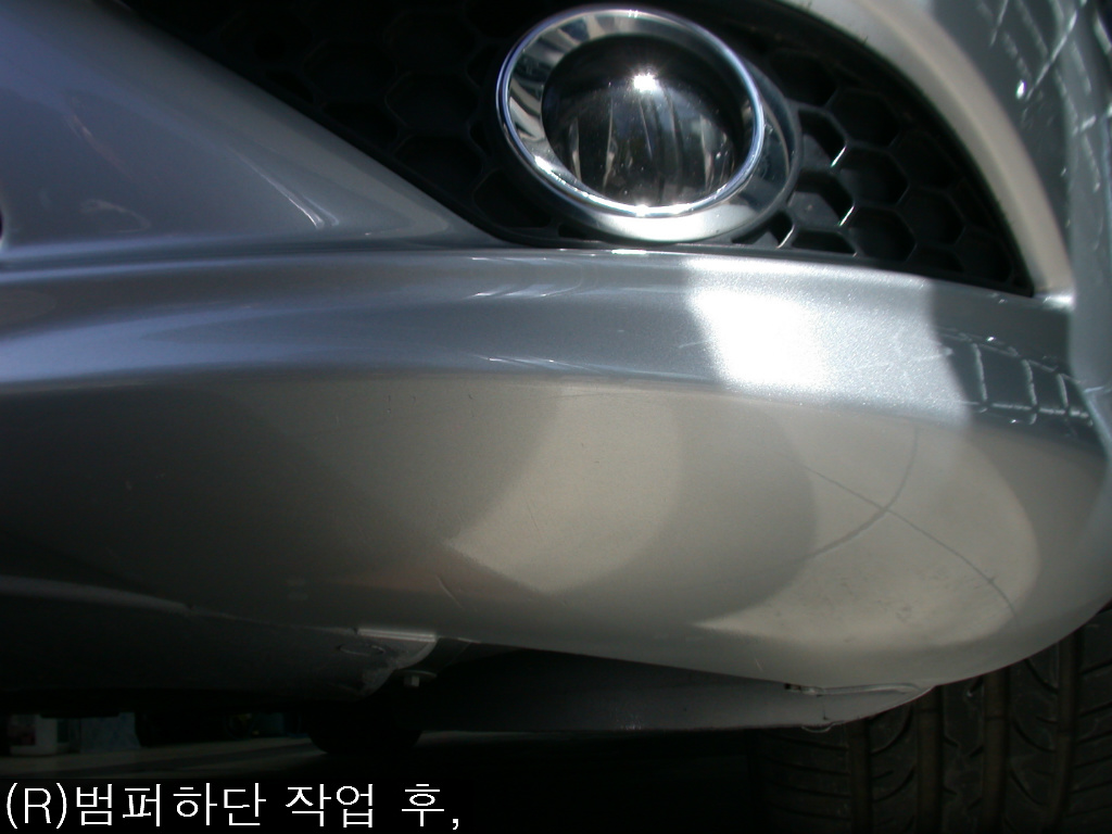 저희 오토글림 가락점의 관리차량 중 한대이지요. 비지니스차 공항에 가셨다가 U턴하던 과정에서 보도블럭에 흠집이 나셨습니다.원래의 흠집은 범퍼하단이 음푹들어간 흠집이였지만, 최대한 살리려 애셨던 작업이였습니다.