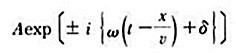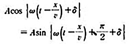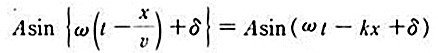 여기서 A : 진폭, ω : 각 주파수, υ : 파의 위상 속도, δ : 처음 위상, k=ω/υ=2π/λ: 위상 상수(λ : 파장).