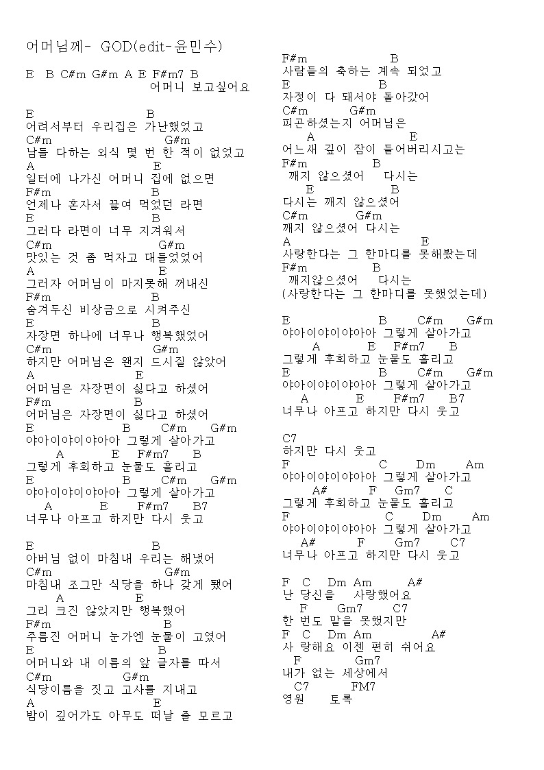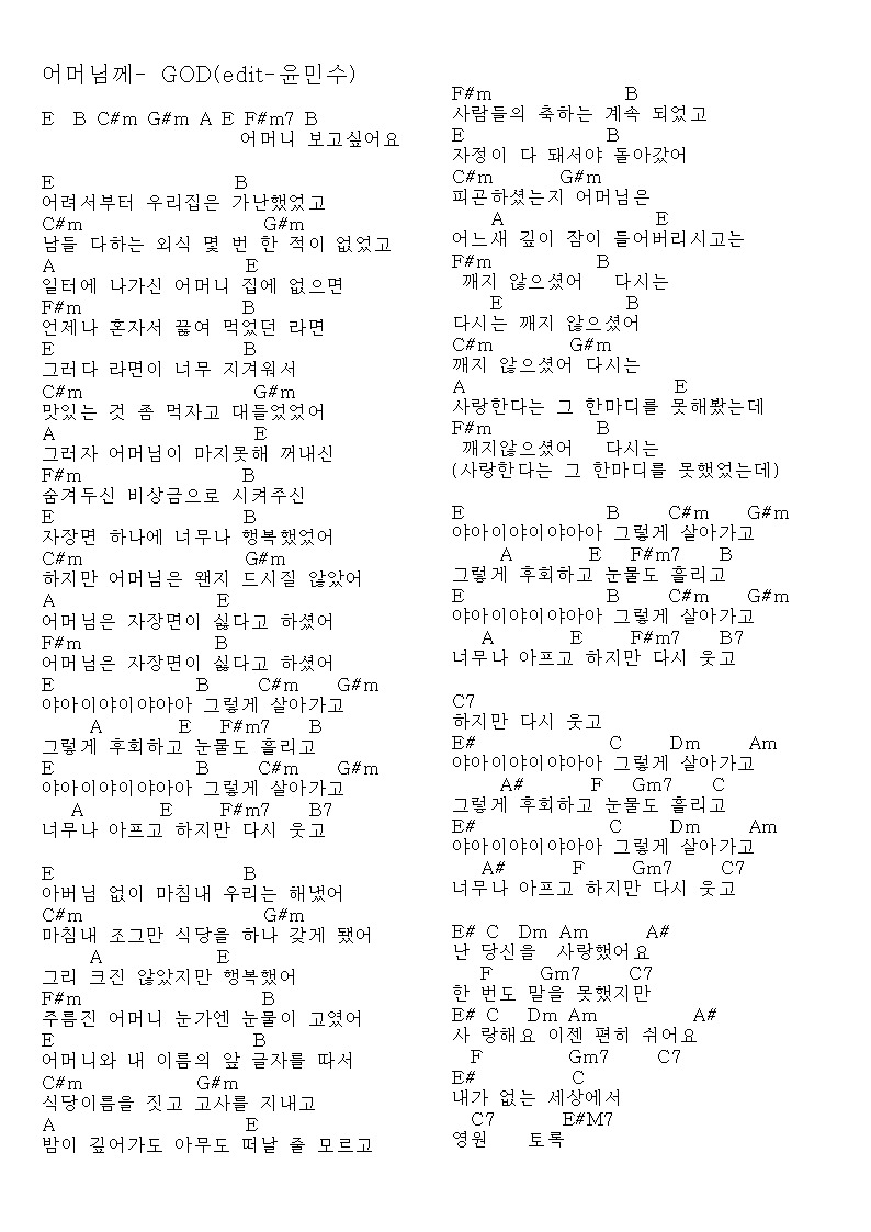 오키도키님 악보를 상당히 도용했습니다. 그외엔 인터넷, 그리고 대강 듣고(전형적인, 캐논코드진행이죠...하지만 정말 명곡.) 써봅니다.