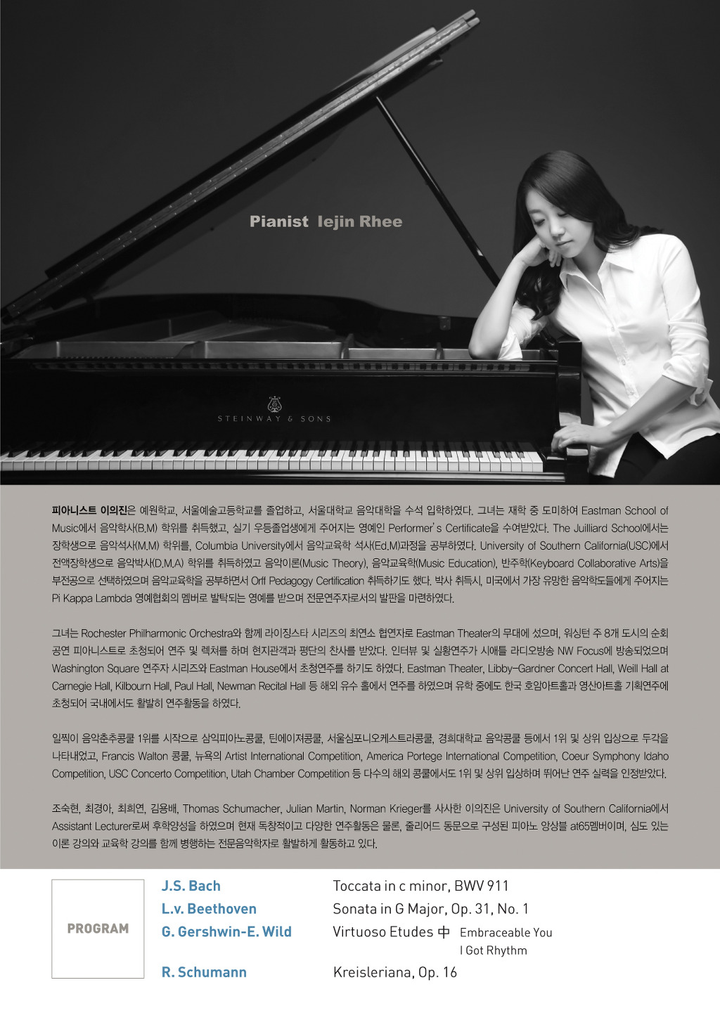 [스크랩] [무료공연] 이의진 피아노 독주회 2015년 12월 17일 (목) 3시 한국가곡예술마을 나음아트홀 초청공연