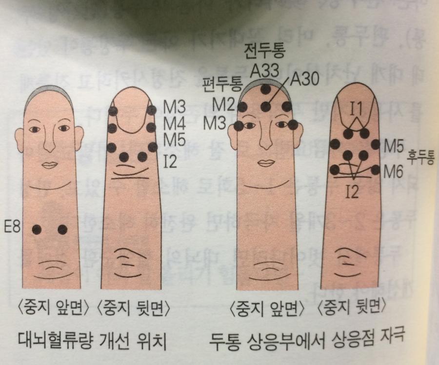 뒷머리가 아프면 I1, I2, M5, M6을 눌러주면 됩니다.