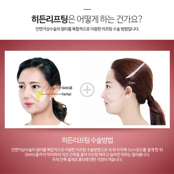 귀 위 두피쪽 5cm정도를 절개한 뒤 SMAS층까지 박리를 한뒤