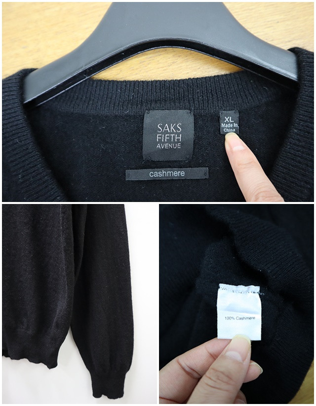 23-8번 SAKS 삭스피프스에비뉴 캐시미어100% V넥 니트
