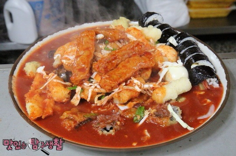 또한, 떡볶이 떡과 어묵. 튀김. 김밥. 삶은계란 등은 흔히 볼 수 있는 것이지만, 떡볶이에 소면이 들어간다는 것에 신선한 충격을 받았었습니다.