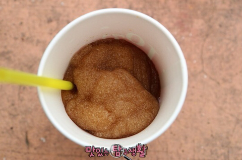 호기심에 먹어봤더니 달달한 밀 떡볶이에 튀김 만두 한 개가 넣어져 있었고 그 밑에는 펩시콜라 슬러시가 있었습니다.