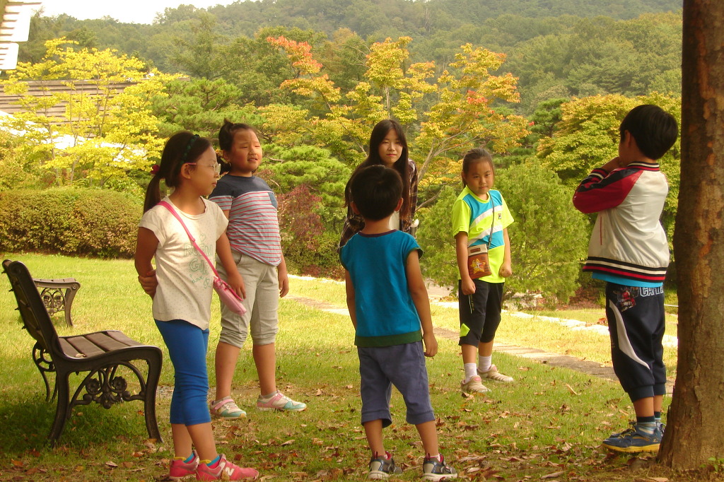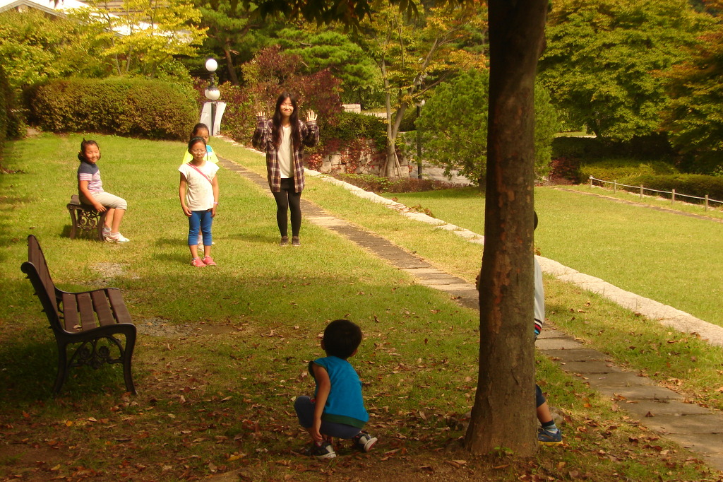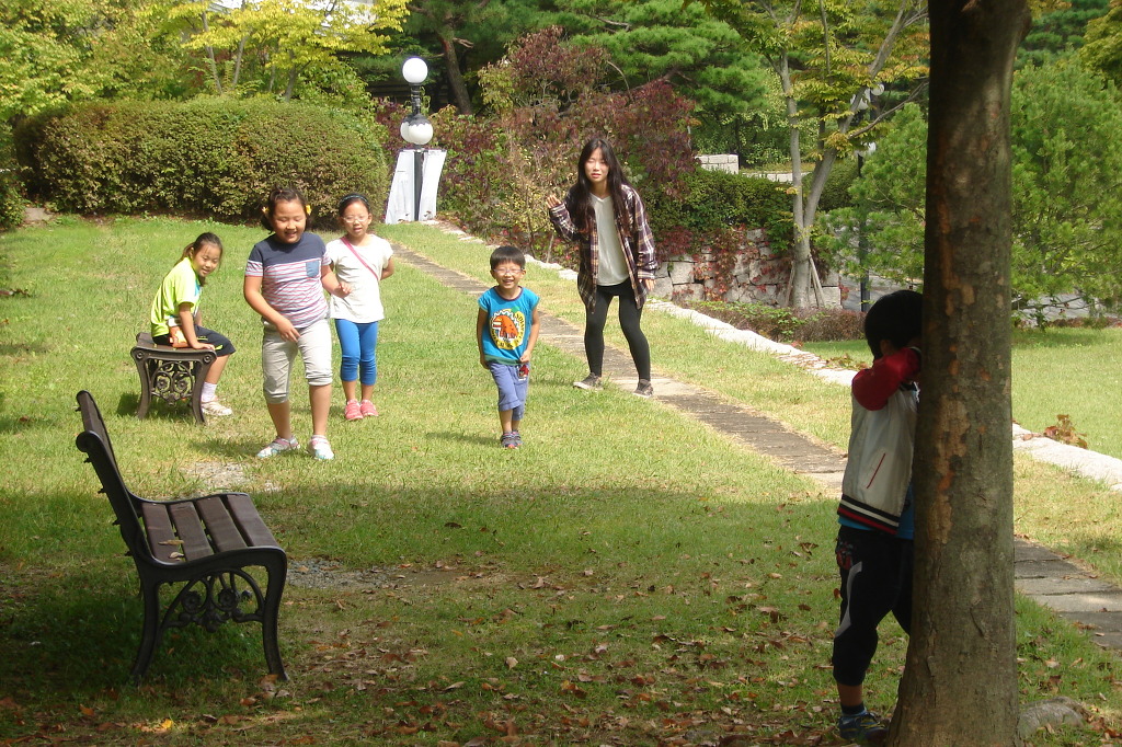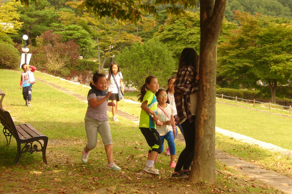식사 후 아이들과 선생님은 무궁화꽃이 피었습니다 놀이 중. 너무 재미있게 놀아 조금 더 사진에 담았습니다.