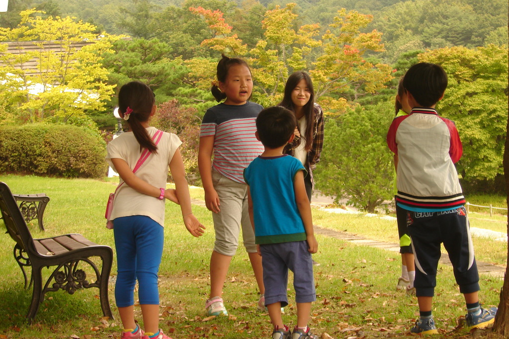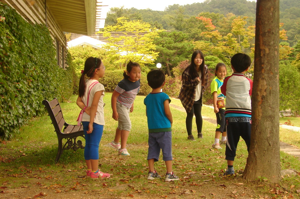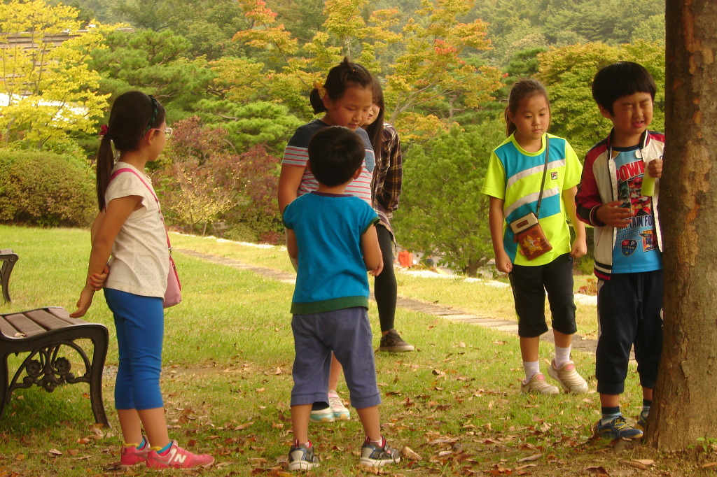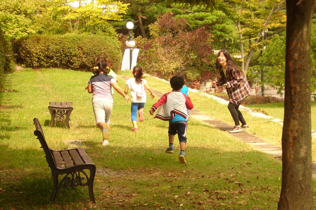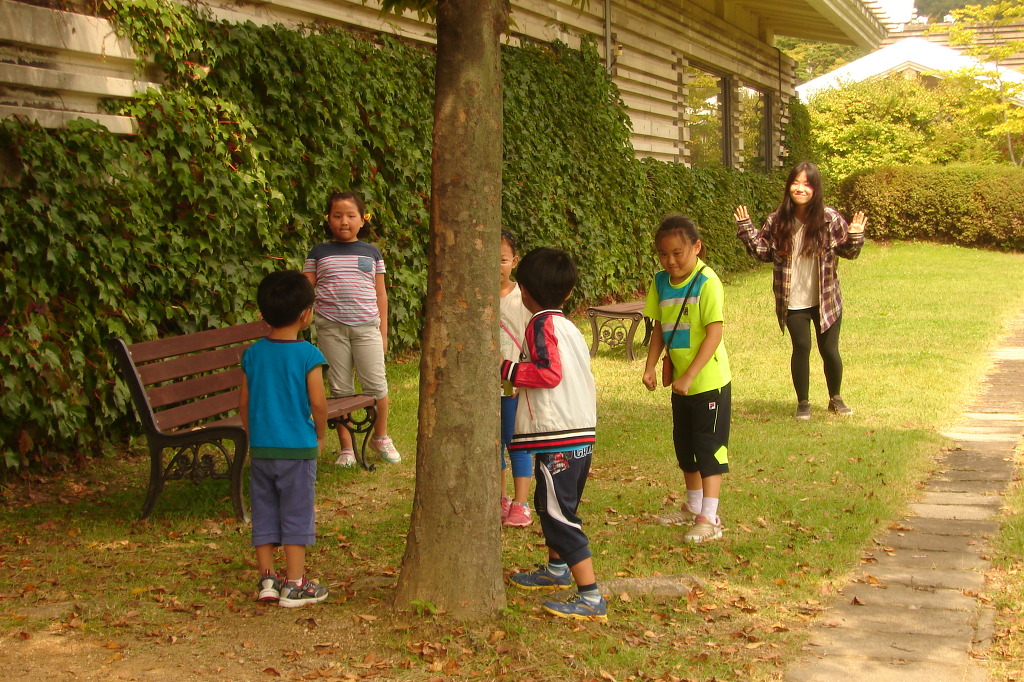 식사 후 아이들과 선생님은 무궁화꽃이 피었습니다 놀이 중. 너무 재미있게 놀아 조금 더 사진에 담았습니다.