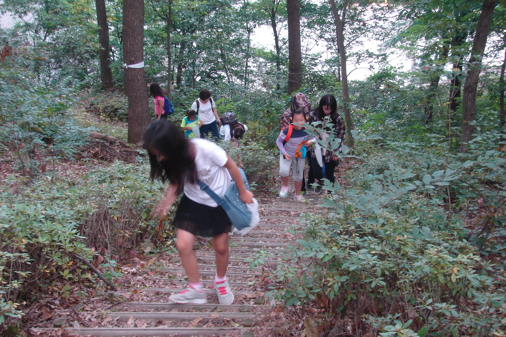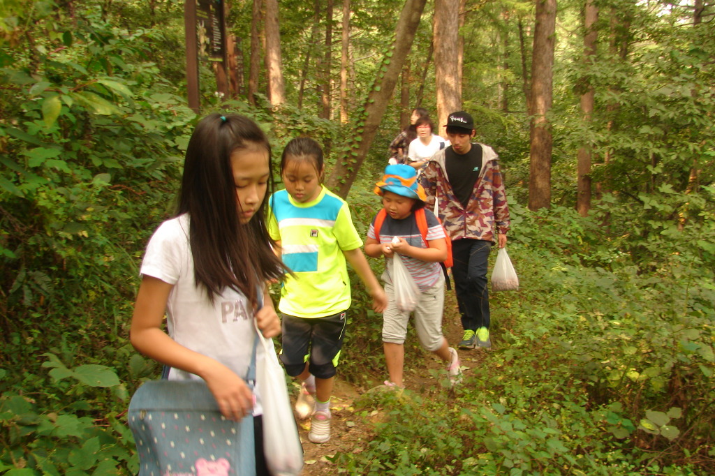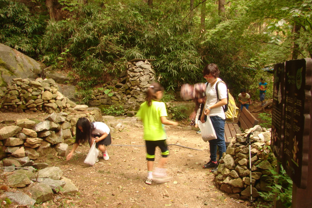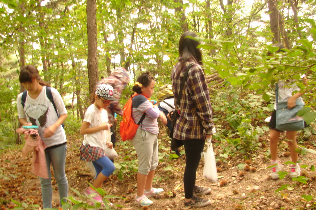 걷기길 주변에 도토리와 밤이 많아 줍고 있어요.