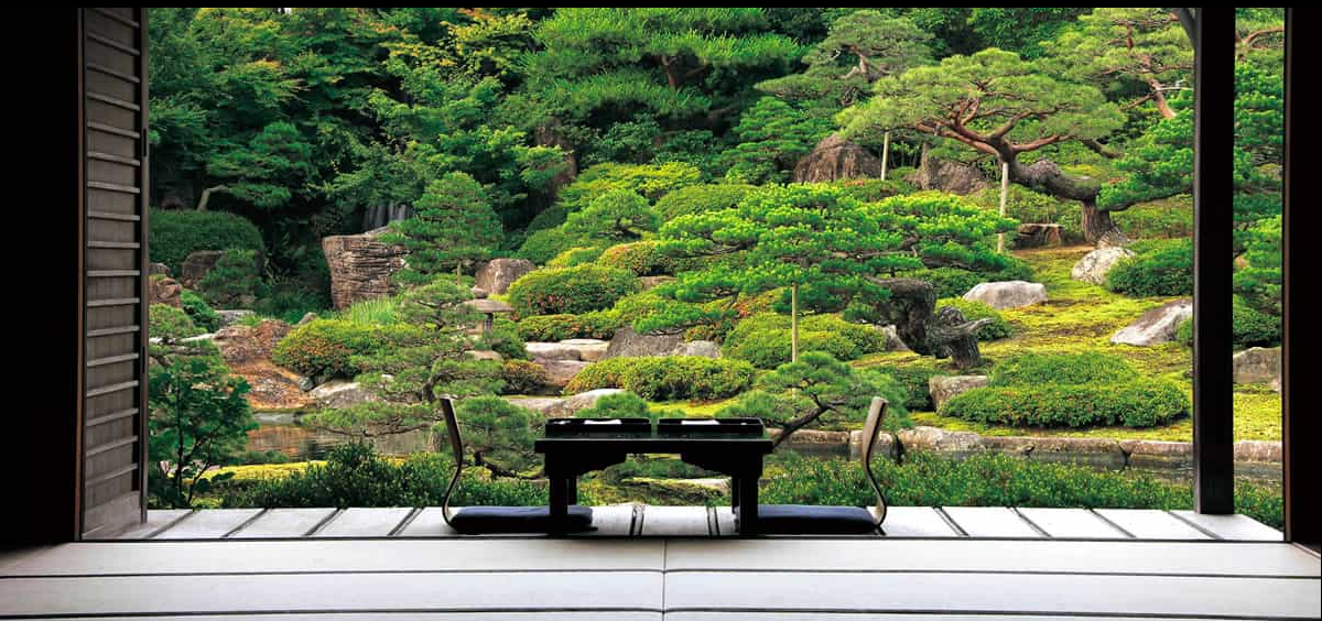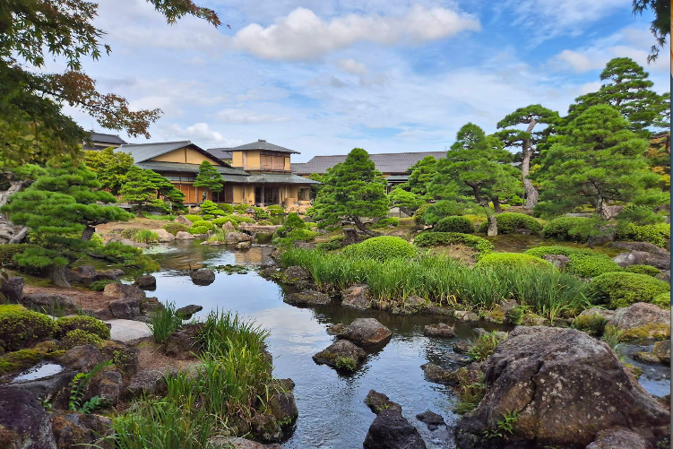 유시엔은 이즈모 지역의 풍경과 신화를 담은 연못을 중심으로 조성된 전통 일본식 정원입니다.