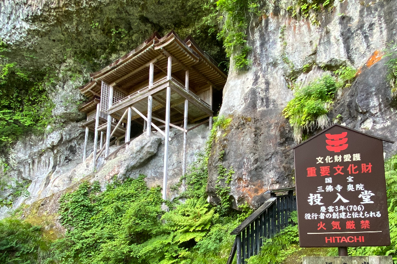 도톳리현 유일한 국보급 문화재인 미토구산(三德山)의 산부쓰지(三佛寺) '나게이레도(投入堂) 불당'을 보러 가는 트레킹입니다. 걸음에 집중하는 편도 당 700m의 짧은 길입니다.