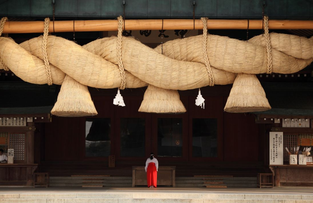 신도에서 "인연"(縁, 우리를 하나로 묶는 인연)"의 신 오쿠니누시노오카미에게 바쳐진 이즈모타이샤 (이즈모대사)는 일본에서 가장 오래되고 존경받는 신사 중 하나로, 국보로 지정되어 있습니다.