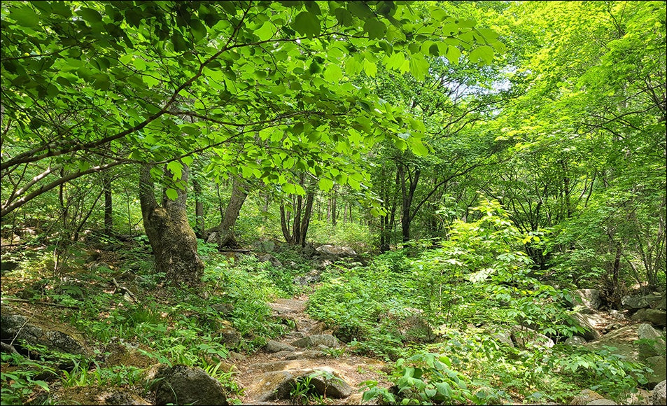 숲길은 계곡과 나란히 걷습니다.