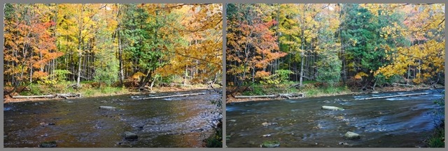 색감의 변화가 보이고 계곡물의 흐름이 부드럽게 변한 걸 볼 수 있습니다.