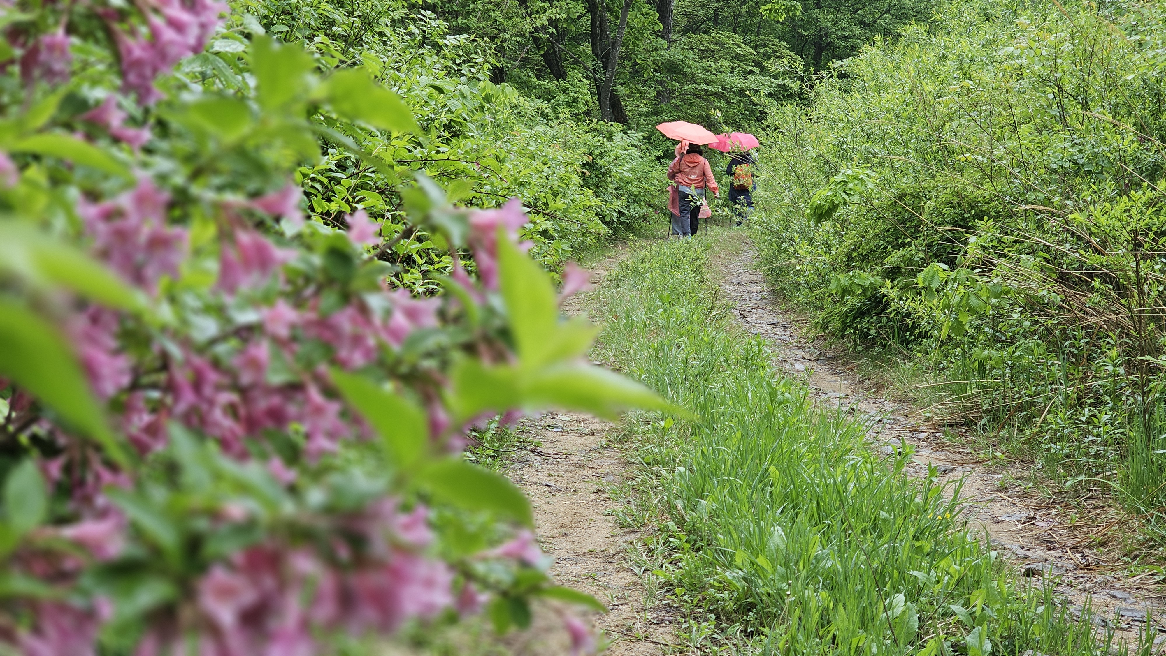 풍성한 신록이 우거진 숲, 길가의 수수한 야생화에 매료되는 길입니다.