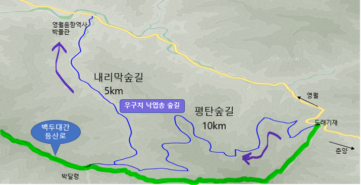 | 여행지 | ▷봉화.영월 우구치낙엽송숲길 / 15km / 5~6시간 ▷난이도: 경사-하, 거리-하중, 속도-하중 |