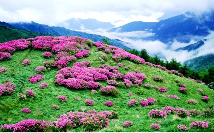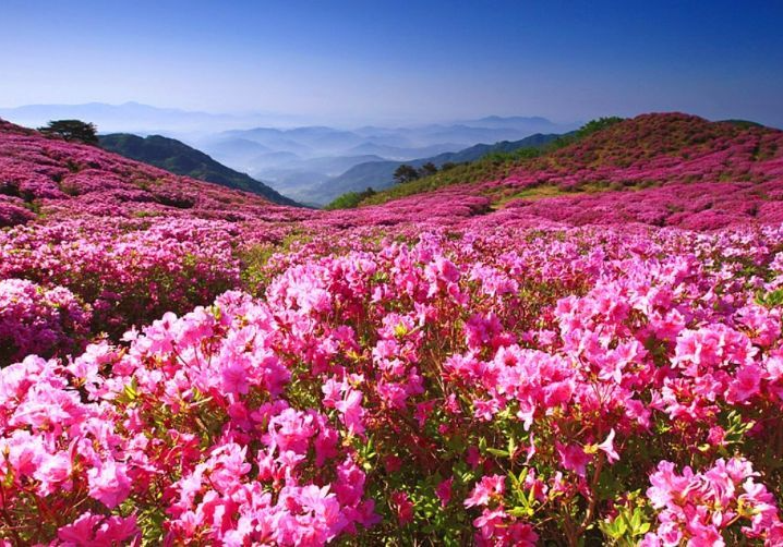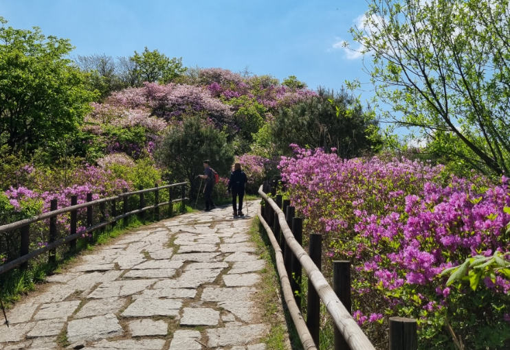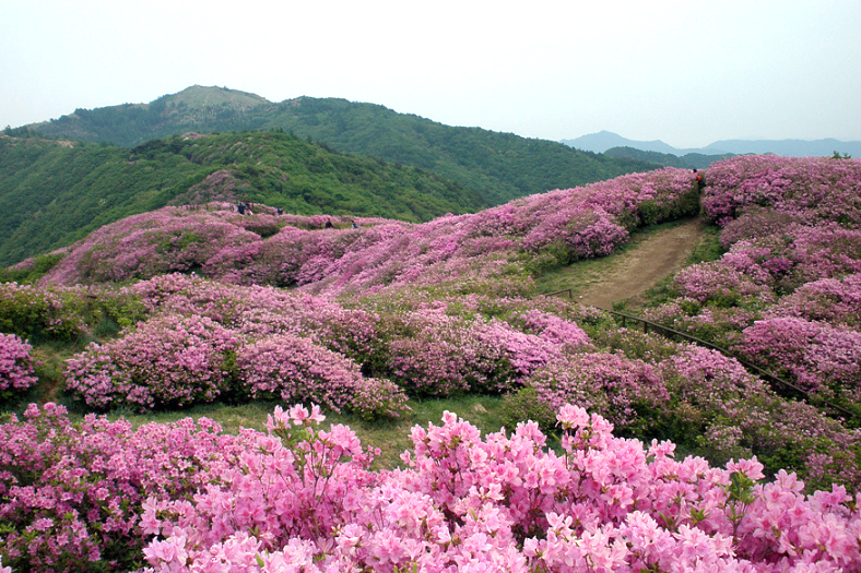 특히 해발 1,100미터가 넘는 고원 지대에 군락을 이룬 철쭉은 마치 산 전체를 선홍색 비단으로 덮은 듯한 풍경을 자랑한답니다.