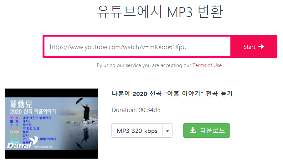 예제는 고음질인 MP3 320 kbps를 선택했다.