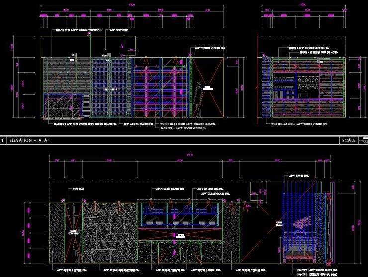 단면기호등을 표기하여 천정과 입면 도면 설계시에 참고하여 그립니다.