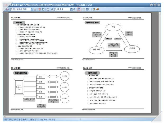 한글 프로그램에서 인쇄미리보기를 살펴보면 불필요한 여백없이 슬라이드가 배치되어 있음을 확인할 수 있습니다.