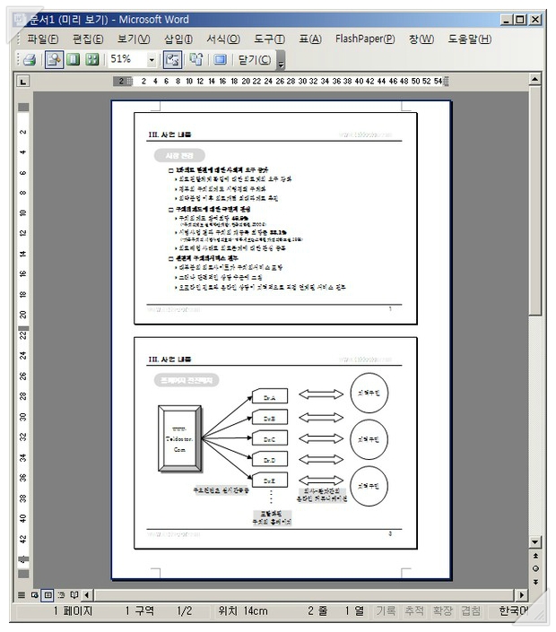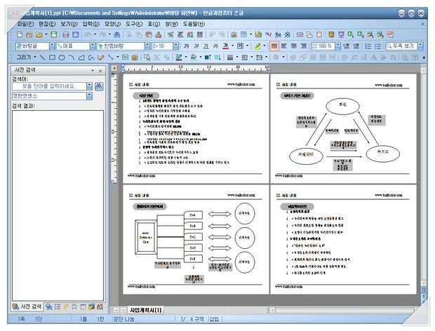 아래 그림에서 처럼 파워포인트 문서가 잘 열립니다. (아래 그림은 두쪽보기로 설정해 둔 캡춰화면입니다.)