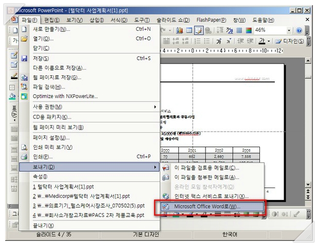 3. 파워포인트를 워드로 보낸 후 워드에서 분할 출력하는 방법