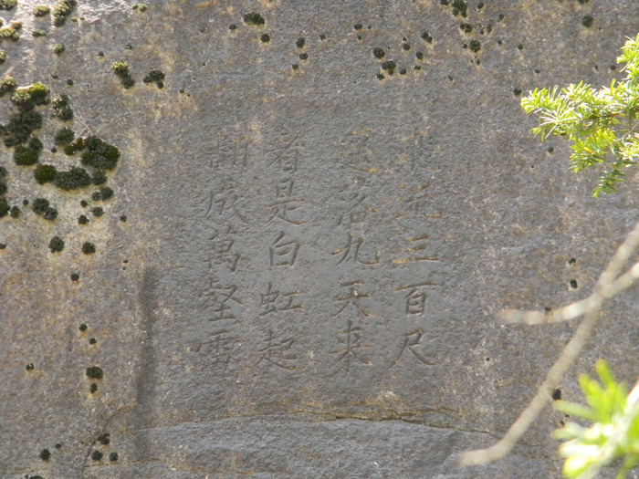 | 숙종이 옥류천을 찬양하며 지은 오언절구(五言絶句) 시가 소요암 피부에 선명하게 들어있으니 내용은 이렇다. 비류삼백척(飛流三百尺) - 날아 흐르는 물이 300척이고 요락구천래(遙落九天來) - 멀리 떨어지는 물은 구천에서 내리네 간시백홍기(看時白虹起) - 볼 때 흰 무지개 일고 번성만학뢰(翻成萬壑雷) - 골짜기마다 번개 소리 가득 하네 | |