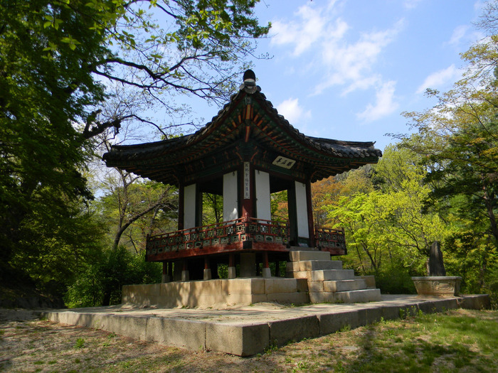▲ 소요암에 희미하게 깃든 옥류천 바위글씨 옥류천 일대를 처음 개발했던 인조가 1636년에 기념으로 남긴 것이라고 전한다. 하여 창덕궁 및 조선 궁궐에 있는 바위글씨 중 가장 늙은 존재가 된다. ▲ 소요정(逍遙亭) | |