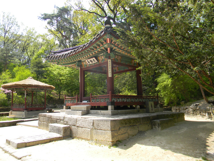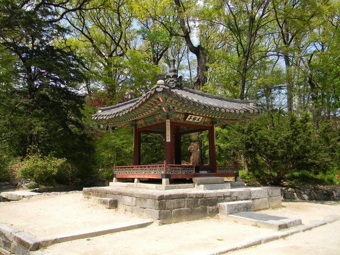 | 옥류천 구역으로 인도하는 동쪽 숲길을 오르면 고개 정상에 활짝 열린 모습의 취규정이 마중 을 한다. 여기서 존덕정에서 올라온 서쪽 숲길과 만나는데, 이곳에서 북쪽 숲길로 가면 옥류 천 구역 중심부로 이어지며, 서남쪽 숲길은 연경당(延慶堂)으로 빠진다. 그리고 서쪽 숲길은 다래나무와 신선원전(新璿源殿)으로 이어지는 창덕궁 후원의 북쪽 길로 내가 갔을 때는 통제 구역으로 굳게 닫혀 있었다. (공개하는 경우도 가끔 있으니 사전에 창덕궁에 확인 요망) 옥류천의 입구 역할을 하는 취규정은 정면 3칸, 측면 1칸의 시원스런 팔작지붕 정자로 1640년 에 세워졌다. '취규'란 이름은 학자들이 모인다는 뜻으로 이를 통해 제왕과 왕자들의 휴식 및 독서를 위한 공간으로 지어진 것으로 여겨진다. | |