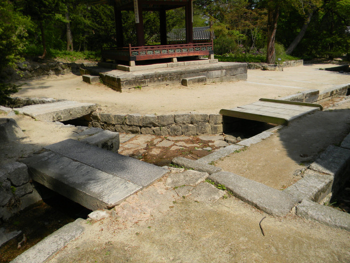 | 소요암 피부에 얕게 굴곡진 수로를 내고, 그 수로 끝에는 물이 고인 못이 있다. 못에 모인 물 은 바로 벼랑으로 떨어져 조촐하게 작은 폭포를 자아내고, 폭포 밑으로 못이 있는데, 못 앞에 넓게 누운 반석(磐石)에 동그랗게 수로를 내어 그곳으로 수분이 들어가게 했다. 여기서는 물길에 술잔을 띄우고 시를 지으며 풍류를 즐기는 유상곡수연이 종종 열렸다고 하는 데, 술잔을 물에 띄우고 그 술잔이 1바퀴 돌아 자기 앞에 올 때까지 시를 지어 읊은 것이 유 상곡수연의 백미(白眉)이다. 만약 시를 짓지 못하면 벌주를 마셔야 했다. | |