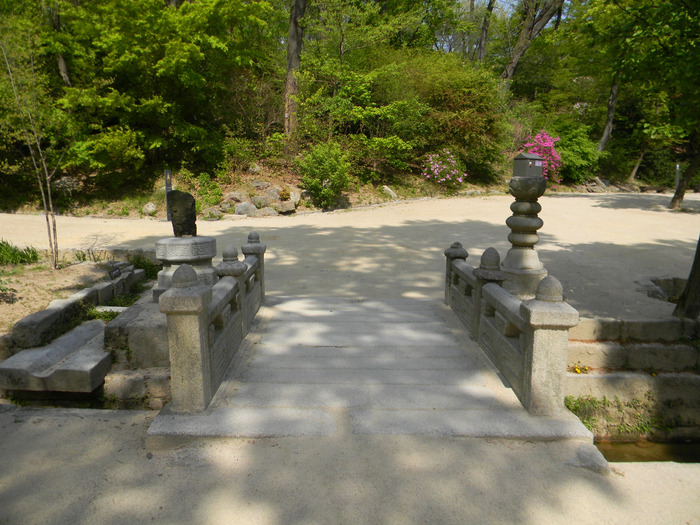 | ▲ 동쪽에서 바라본 소요정 | ▲ 소요정 옆 돌다리 |