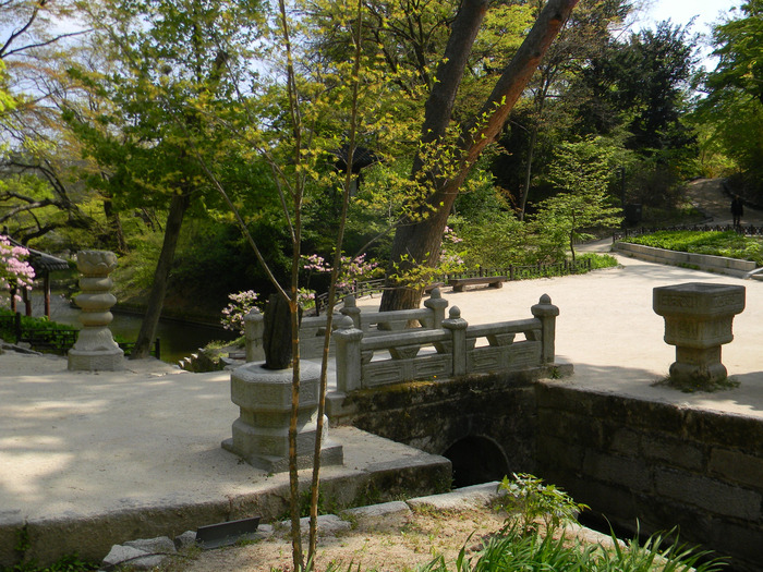 | 소요암 주변을 흐르는 옥류천 물을 가져와 태극정과 청의정, 소요정 사이로 작게 물길을 내고 조그만 돌다리를 넉넉히 얹혀서 옥류천 구역 식구들을 서로 이어주었다. 옥류천은 가뭄과 겨 울을 제외하고 물길을 늘 수분으로 채워주었으며, 물길에 물이 흐르면 돌다리도 진정한 돌다 리의 역할을 한다. 돌다리들은 통돌 2개 또는 3개로 아주 간결하게 만든 소박한 모습으로 창덕궁은 너른 후원을 지닌 특성으로 서울에서 늙은 돌다리들이 가장 많다. 하여 서울의 돌다리박물관 같은 곳이다. | |