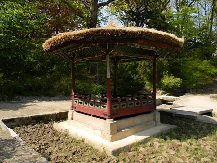 | 태극정 옆에 자리한 청의정은 초가 지붕을 지닌 1칸짜리 정자이다. 기와 정자는 많이 봤지만 늙은 초가 정자는 거의 없는 편으로 '동궐도'에는 후원에 초가 건물이 16채가 나온다. 허나 모두 사라지거나 기와 정자로 성형되어 지금은 오로지 이곳만 남아 후원 유일의 초가 정자이 자 조선 궁궐의 딱 하나 뿐인 초가 지붕 건물이며. 거기에 이 땅의 초가 정자 중 가장 늙은 존재로 독보적인 가치와 존재감을 보이고 있다. 수수하면서도 정겨운 모습이라 옥류천 정자 식구 중 내 침침한 두 망막을 가장 오래도록 부여 잡았는데, 화려함과는 거리가 먼 소박한 모습이라 부득이 뼛속까지 서민인 나와 정서적으로 비슷해서 그런 것 같다. 그와 약간의 동질성이라고나 할까. 정자 주위로 풀이 돋은 공간이 네모나게 둘러져 있는데, 이곳은 벼를 기르는 논이다. 이 또한 조선 궁궐 및 천하 궁궐, 그리고 서울 도심의 유일한 논으로 희소가치가 백두산만큼 크다. 이 처럼 청의정과 그에 딸린 논은 아주 희귀한 존재로 국가 보물의 지위가 충분하나 늦게나마 그 지위를 얻은 부용정, 연경당, 주합루 등과 달리 여전히 비지정문화재에 머물러 있다. 제왕은 왕세자(황태자), 신하들과 이곳에서 직접 벼를 심어 가을에 수확했는데, 여기서 나온 볏짚으로 청의정의 지붕 이엉을 거의 매년마다 교체했다. 이렇게 벼를 기르고 청의정 지붕을 볏짚으로 한 것은 궁궐 식량을 충당하려고 함이 아니라 제왕이 몸소 백성들의 고단함을 체험 하고(서민 체험, 백성 체험) 농사의 소중함을 백성들에게 널리 일깨워주고자 함이다. 그러니 까 일종의 정치쇼였다. 논에 둘러싸인 청의정은 1636년에 지어진 것으로 '청의'란 '맑은 물결'을 뜻한다. 하여 옥류 천의 맑은 물을 상징하여 지은 것으로 보이는데 이곳에는 정조의 시액(詩額)과 선조(宣祖)의 어필(御筆)이 걸려있었다고 전한다. 청의정 논은 옥류천 물을 소환하여 수분을 채웠는데, 논 한복판에 기단을 쌓아 아담하게 터를 닦고 그 위에 장대석을 깔아 정자를 얹혔다. 비록 논 한복판이지만 논에 물을 대기 때문에 벼 가 무럭무럭 자라는 때는 거의 섬과 같은 모습이 된다. 정자의 정면인 북쪽으로 큰 통돌로 이 루어진 돌다리를 놓았는데, 길이는 1m 정도, 폭은 한 사람 사이즈로 꽤 작다. | |