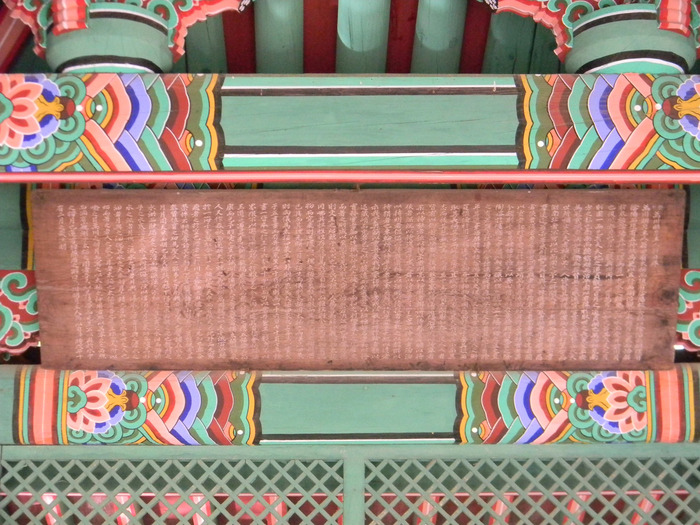 | 존덕정에는 1798년에 정조가 쓴 붉은 피부의 현판이 걸려있다. '만천명월주인옹(萬川明月主人 翁)'이란 제목으로 글씨가 빼곡히 깃든 장문의 글로 내용을 간단하게 풀이하면 이렇다. '세상의 모든 시내는 달을 품고 있지만 하늘에 떠 있는 달은 유일하니 그 달은 곧 임금인 과 인(寡人)이고 시내는 곧 너희 신하이다. 따라서 시내가 달을 따르는 것은 우주의 이치다' 즉 나는 곧 국가이자 달이며 해이니 신하들은 무조건 나에게 충성하라는 강력한 메세지와 함 께 왕권 강화와 개혁정치를 추구했던 정조의 강인한 의지가 담겼다. 천정 중앙에는 황룡과 청 룡이 여의주를 희롱하는 그림이 있으니 용은 제왕을 상징하는 존재로 이 역시 왕권의 지엄함 을 뜻한다. 이렇듯 주합루와 부용정, 그리고 존덕정까지 후원 곳곳에 진하게 발자취를 남기며 개혁 군주 의 길을 걸었던 정조는 1800년 49세의 나이로 붕어(崩御)함으로써 그의 꿈은 맥없이 지고 말 았으며, 안그래도 시작부터 비리비리했던 조선은 더욱 말라만 가서 결국 100여 년 만에 허무 하게 절단이 나버린다. | |