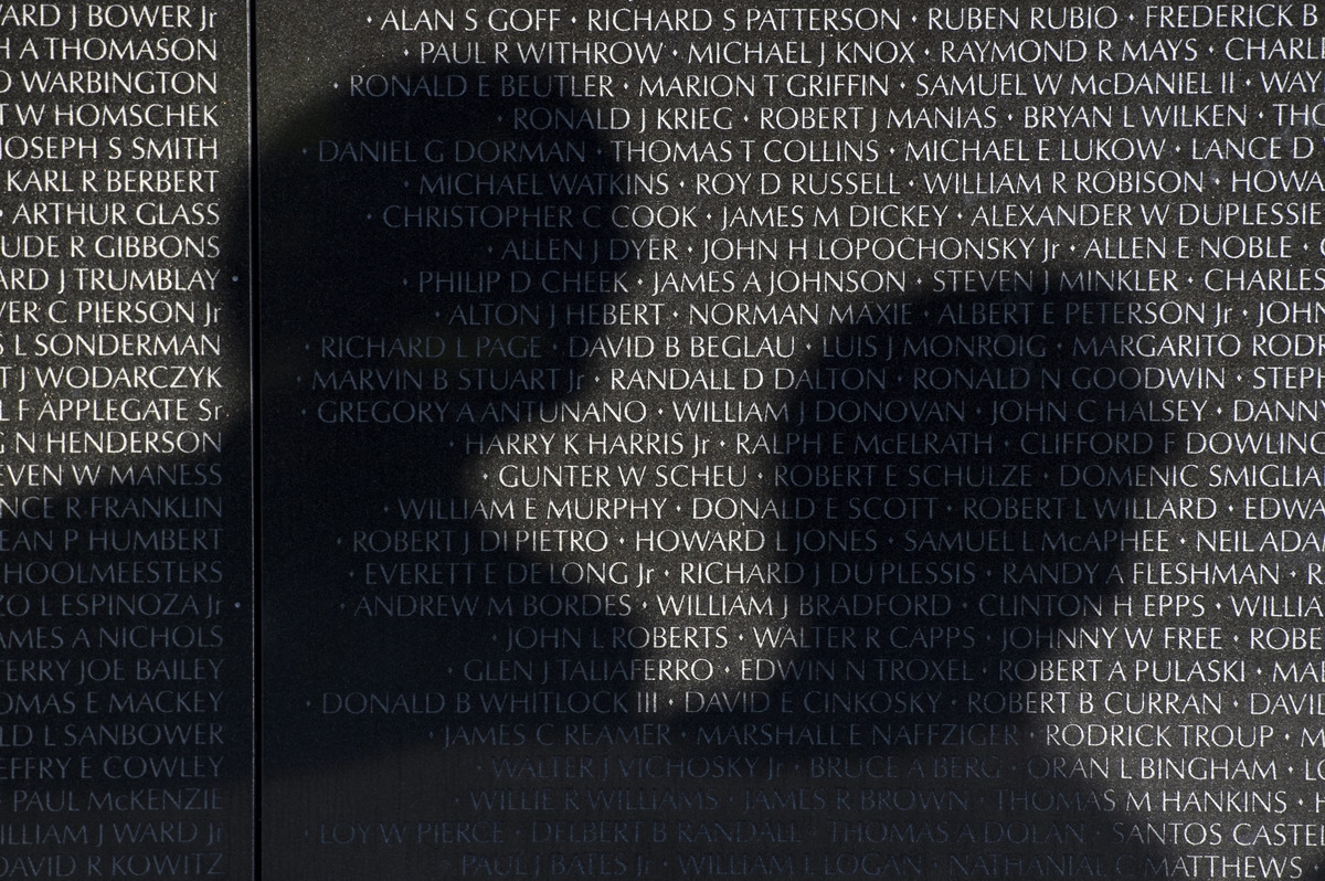 기념비에는 5만 8천 명이 넘는 사망자들 이름이 사망 연도 순서로 모두 새겨져 있다. 검은 화강암은 거울처럼 반사되도록 제작했다. 관람자가 죽은 이들의 이름을 바라보는 순간, 기념비에 자기 모습도 비친다. 죽은 이와 산 자가 공존한다. 추모와 치유가 동시에 이뤄진다. '과연 전쟁은 기념해야 할 일인가?',하는 의문을 가장 명료하게 해소한 기념비라고 할 수 있다. 지금도 기념비를 찾는 사람들은 탁본을 뜨거나, 어루만지거나, 묵념하면서 사망자들을 기억한다. 그들 마음속에서 영웅으로 부활한다.
