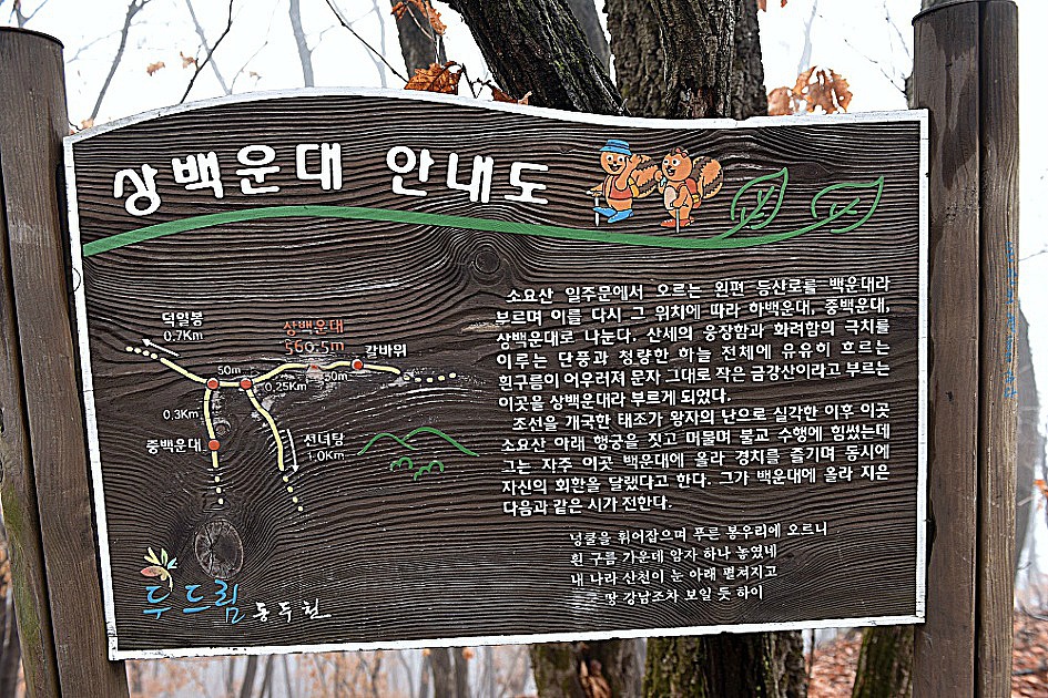 소요산 산림욕장 입구에 허름한 팔각정이 하나있고 이후 소요산 최고봉인 의상대까지 가끔씩 있는 이정표 이외 산꾼을 위한 편의 시설은 1도 없습니다 쉼터하나 없는 이런 등산코스는 처음 보았습니다