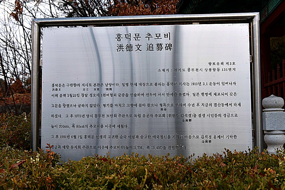 구한말에 독립 만세운동을 이끌었던 홍덕문의 추모비