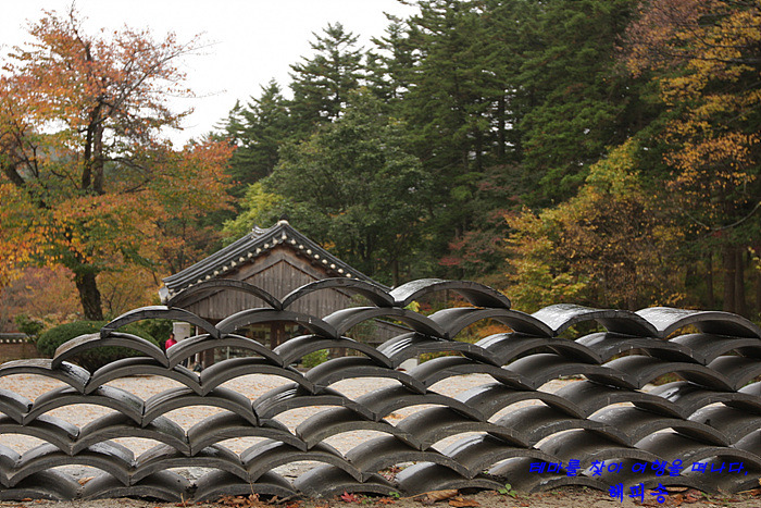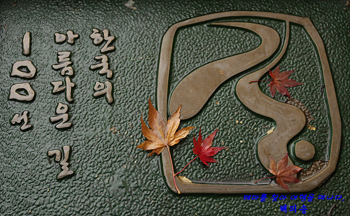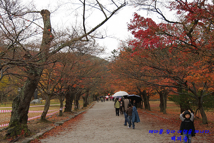 사이사이 끼여있는 붉은 단풍잎은 어여뿐 자태를 뽐내는양,