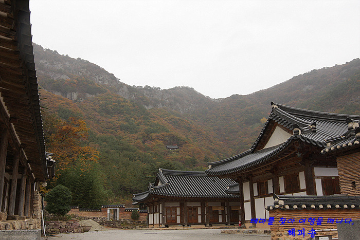 고목 느티나무와 감나무가 초입을 막고, 능가산 봉우리를
