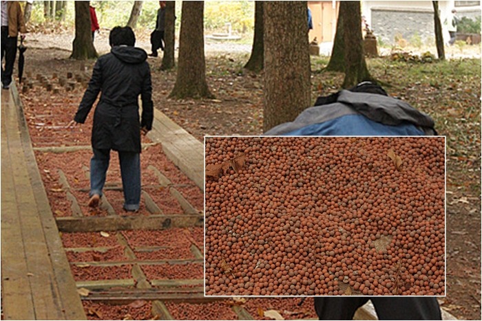 전나무 숲아래 황토알이 깔려있어 맨발로 걸으면, 시원하고 피로가 풀린다고 한다.