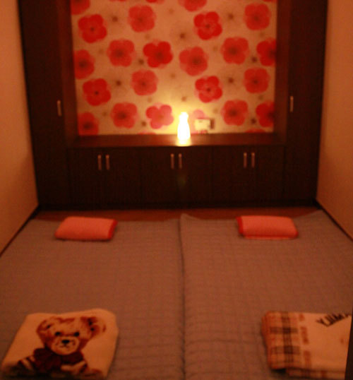싱글룸이 아닌 넓은 트윈룸으로 들어가 두 명의 마사지사에게 받는 것.