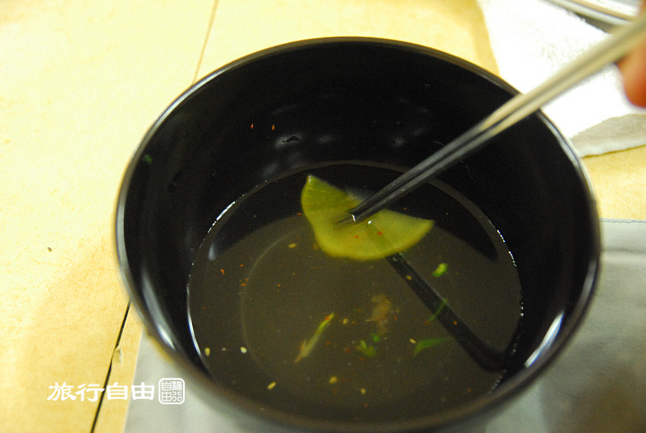 식사를 마쳤으면 물그릇의 물을 밥 그릇으로 옮겨 단무지를 이용하여 깨끗이 씻어 주고,