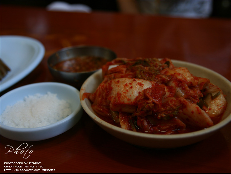 그리고 콩국수 간을 위한 소금과 지지배가 너무너무 조아하는 김치!! 김치도 어찌나 맛있는지 밥 한공기만 주면 김치랑 밥만으로도 다 먹을수 있을꺼 같았다 역시.. 어머니 순두부라는 가게 이름 답게 어머니 김치맛은 끝내줘용!!