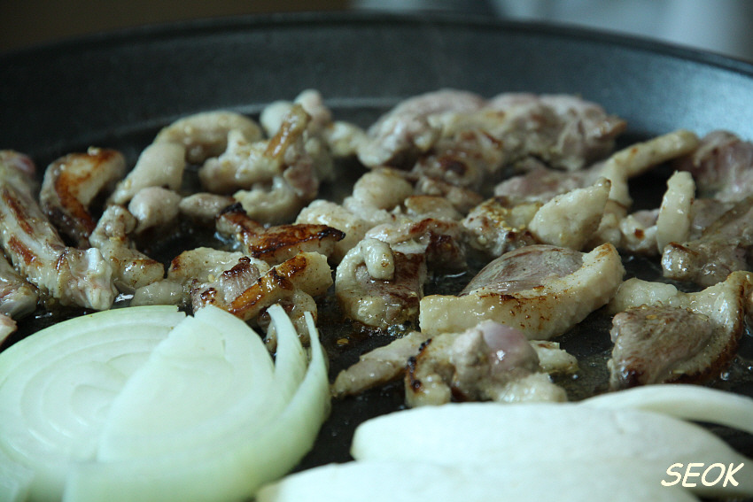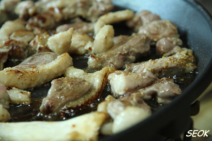 오리고기 익어가는 냄새가 참 꼬소하데요...익기도전에 자꾸 눈이 가고