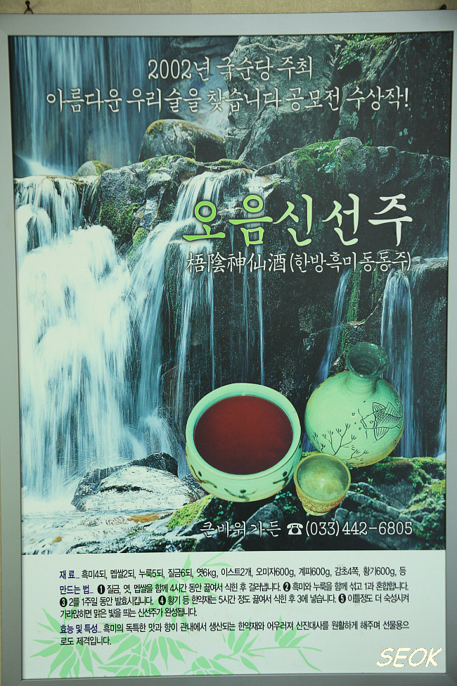 여기서 직접 만들어서 곡주로 유명한 국순당대회에서 입상하신 독특한 작품이니깐요.