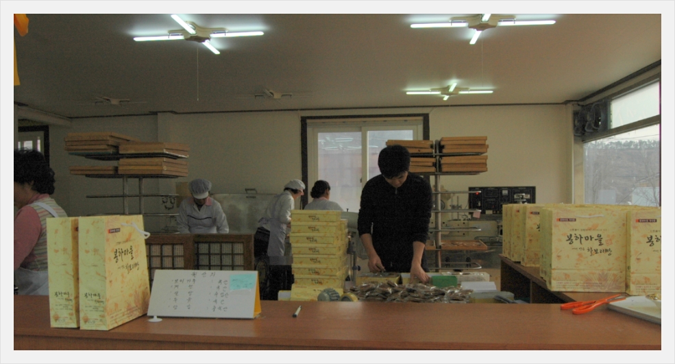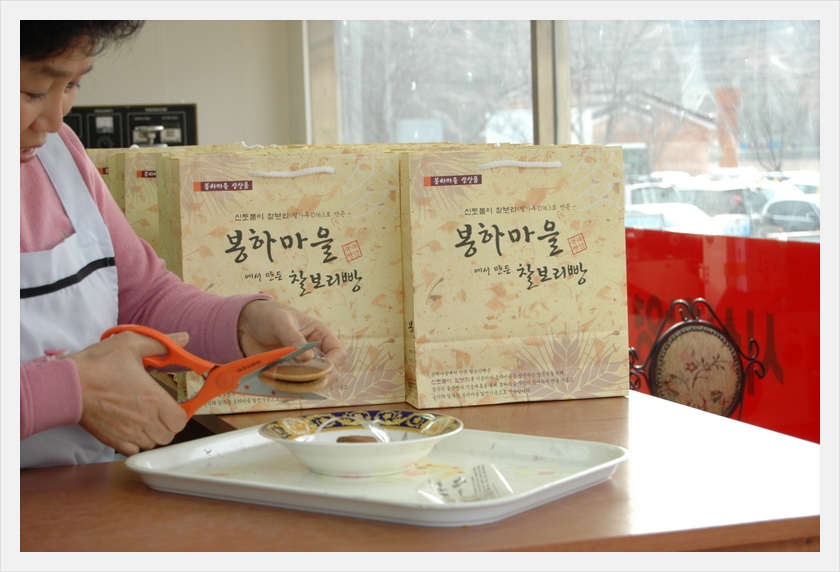 적당한 크기의 빵집에서 봉하빵을 만들고있다. 지금은 조금 쉬어가면서 만들지만 지난해에는 방문 손님들이