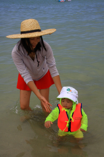물위에서 한가로이 보내는 예쁜 엄마와 귀여운 아가의 모습이 참 정겨워 보인다.